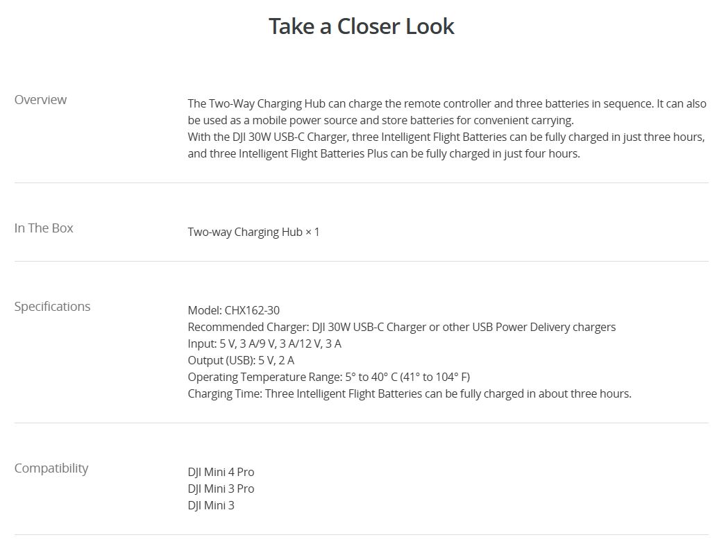 DJI Mini 4 Pro/Mini 3 Series Two-Way Charging Hub