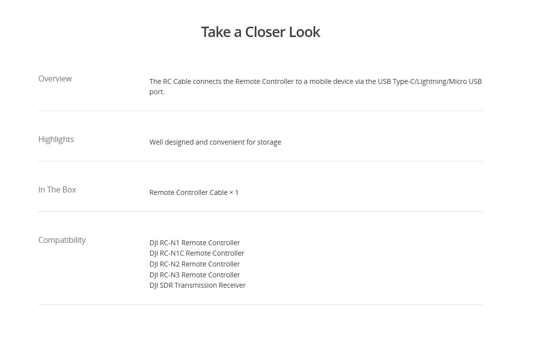 DJI RC-N Series RC Cable (Standard Micro USB Connector)