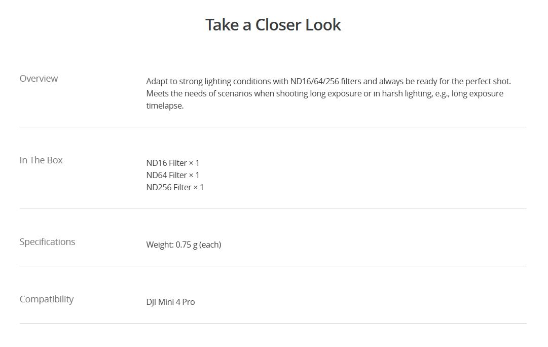 DJI Mini 4 Pro ND Filter Set (ND16/64/256)